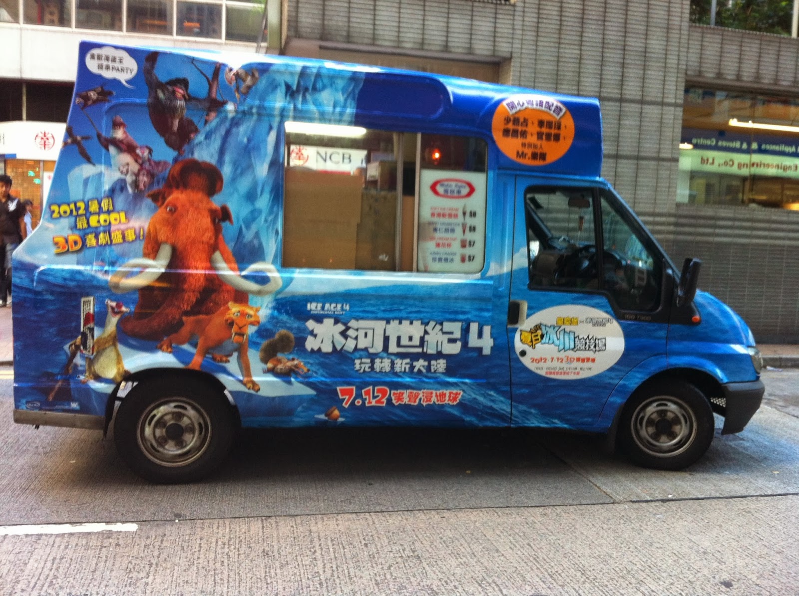 現時不少公司都會利用街上的雪糕車貼上自己公司的廣告,宣傳其產品,當中有一些是上映的卡通電影。