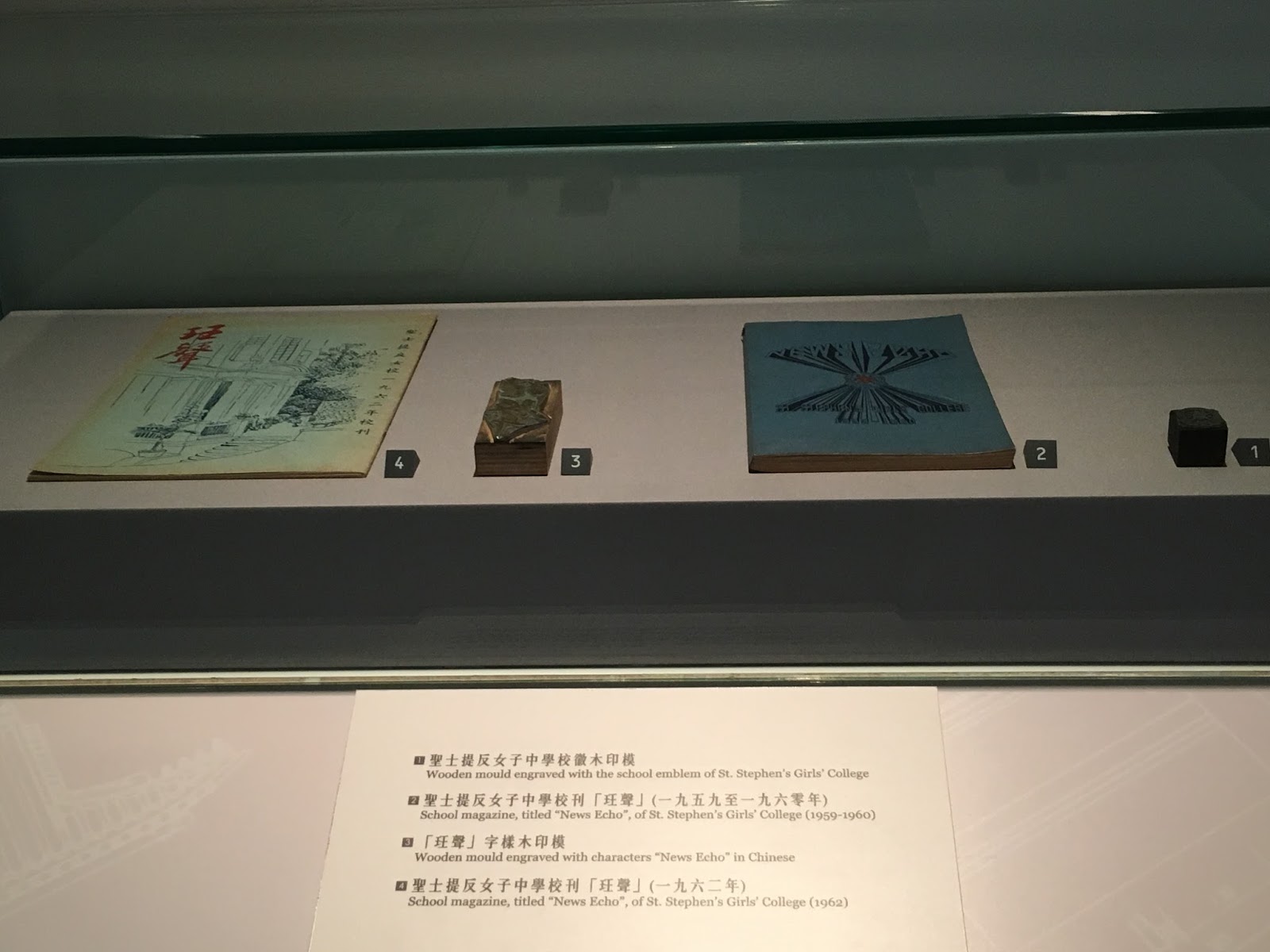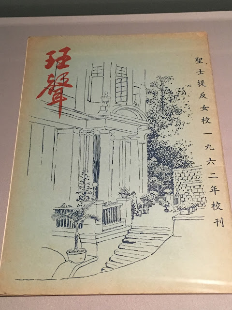 聖士提反女子中學的文物、刊物及經典的藍色女生長衫。